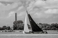 Het Lemster Skûtsje zeil in de baai van Lemmer met op de achtergrond het stoomgemaal, het IR. Woudagemaal.