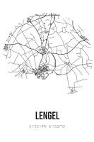 Zwart-witte landkaart, stratenplan of plattegrond van Lengel. Lengel is gelegen in de Liemers, in de gemeente Montferland, provincie Gelderland. Op de stadskaart zijn alle openbare wegen in Lengel opgenomen. Verder is de kaart voorzien van de coördinaten van het centrum van Lengel.