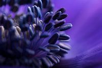 "Lente: Het hart van een paars - blauwe anemoon" is een macrofoto van de meeldraden van een blauw - paarse anemoon.