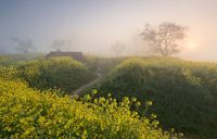 Een prachtige lenteochtend in het Groene Hart van Nederland. Oorspronkelijk was deze lokatie een tijdens de Eerste Wereldoorlog gebouwde uitbreiding van de Nieuwe Hollandse Waterlinie. Voorafgaand aan de Tweede Wereldoorlog is de stelling verder uitgebreid en versterkt maar uiteindelijk is er nooit een schot gelost. Nu is het een prachtig landschap waar in de lente de oude fruitbomen in bloei staan en het koolzaad uitbundig de voormalige loopgraven overwoekerd.