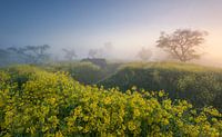 Een prachtige lenteochtend in het Groene Hart van Nederland. Oorspronkelijk was deze lokatie een tijdens de Eerste Wereldoorlog gebouwde uitbreiding van de Nieuwe Hollandse Waterlinie. Voorafgaand aan de Tweede Wereldoorlog is de stelling verder uitgebreid en versterkt maar uiteindelijk is er nooit een schot gelost. Nu is het een prachtig landschap waar in de lente de oude fruitbomen in bloei staan en het koolzaad uitbundig de voormalige loopgraven overwoekerd.