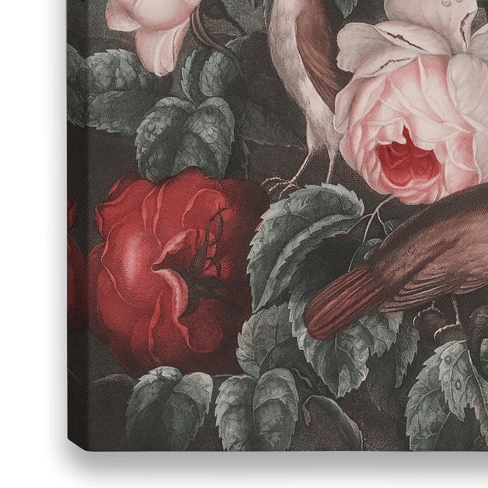 Nostalgisch bloemstilleven met tulpen, rozen en vogels