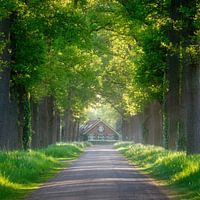 Lente bij Landgoed Ampsen. De bomenlaan kleur mooi groen en het warme ochtendlicht maakt het plaatje af.