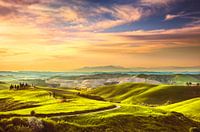 Toscaans landschap bij zonsondergang in de buurt van Volterra.