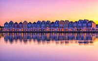 Laat in de lente, bijna aan het begin van de zomer, op een warme avond, terwijl de zon onderging, werd de lucht achter de huizen roze voor een kort tijdsbestek, waardoor deze Nederlandse huizen een extra kleur kregen.