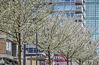 Op de Van Oldenbarneveltplaats, een zijstraat van de Lijnbaan, staat een rijtje sierkersen. Geen bijzonder opvallende bomen, behalve tijdens een week, meestal eind maart, als de bloesems een prachtige witte waas veroorzaken tussen de kantoorgebouwen, woontorens en winkelpanden.