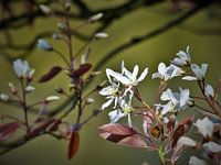 Bloesem met roze en wit op een achtergrond van groen en bruin