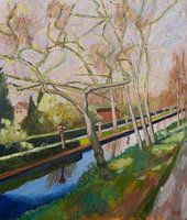 Voorjaar op de Volkstuin in Vlaardingen 60x70 cm acryl canvas.