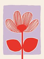 Bloemenelementen in rood op een lilakleurige achtergrond. De stijl is minimalistisch, maar toch met een vleugje kleur.