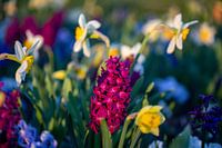 Een zee van bloemen in de ondergaande avondzon