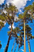 De helderblauwe lucht, de hoopvolle witte wolken en de elegante boomtoppen van de trotse dennen stralen meditatieve kracht en hoopvol vertrouwen uit.
