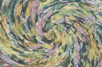 Een abstracte impressie van een lentestorm die over het platteland raast.