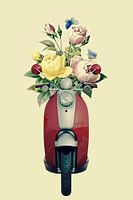 Retro scooter gecombineerd met vintage boeket bloemen.