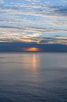 Een enkele lichtstraal als symbool van hoop. Gefotografeerd in de inspirerende stad Etretat, aan de Côte d' Albâtre in Frankrijk bij zonsondergang.