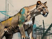 Artistieke moderne schets van een leeuwin in een waakzame houding