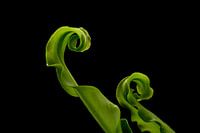 De krullen in de jonge bladeren van deze varen lijken op een danspaar, zo mooi ritmisch. Ik heb de bladeren geïsoleerd van de drukke achtergrond met een stuk zwart papier.