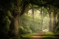 Nederlands zomer bos met mist en zon