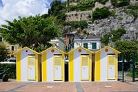 We hielden van deze schattige strandhuisjes in het stadje Vietri sul Mare aan de Amalfikust in Italië. Mooie kleedkamers voor iedereen die van het strand wil genieten.