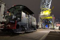 Trein en kraan die deel uit maken van de buitencollectie van het Maritiem Museum in Rotterdam. Een en ander is te vinden aan een van de oudste havens in Rotterdam, de Leuvehaven. De foto is gemaakt met een Nikon D7100 met 16-85 mm objectief en met een sluitertijd van 30 seconden.