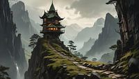 een rotswoning in de Andes, hoog op een rots gebouwd