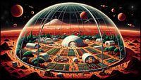Kunstwerk over het leven op Mars. In een enorme biodome houdt een bloeiende…