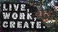 Graffiti. Motiverende slogan. Witte tekst op zwarte bakstenen muur versierd met graffiti.