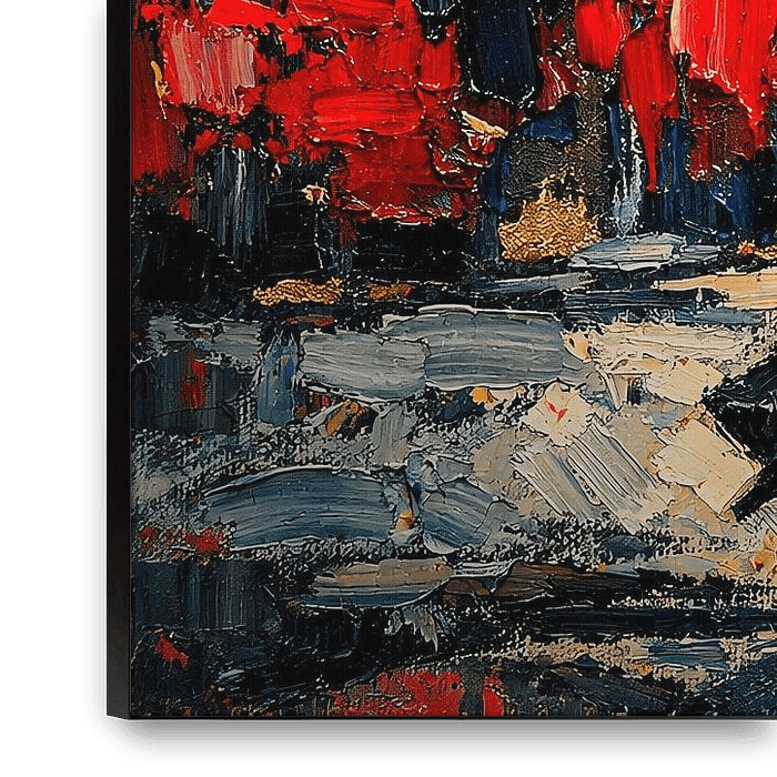 In dit werk vervloeit de architectuur van de metropool tot een explosie van kleur en textuur. Met krachtige, expressieve paletmesstreken wordt een wereld gecreëerd waarin licht en beweging centraal staan.