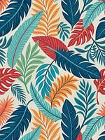 Dompel jezelf onder in een weelderig paradijs met dit levendige textielpatroon met een reeks tropische bladeren. Gedurfde streken en een rijk kleurenpalet van diepblauw, vurig oranje, verfrissend groenblauw en aardgroen brengen dit exotische bladerdak tot leven. Perfect om een vleugje van de tropen toe te voegen aan kleding,…