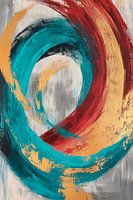 Betoverende spiralen van kleur dansen over het doek en voegen een vleugje dynamiek toe aan elke kamer. De mix van levendig rood, kalmerend turquoise en elegant goud creëert een harmonieus evenwicht dat aanzet tot nadenken. Dit kunstwerk is perfect voor de woonkamer om gesprekken te stimuleren en een uitnodigende sfeer te creëren.