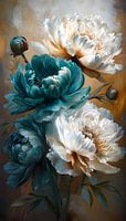 Levendig acryl schilderij van pioenrozen in weelderige kleuren