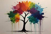 Duik in een wereld waar kleur en creativiteit samenkomen in dit meesterlijke schilderij. Een stoere, zwarte boom staat centraal, zijn takken reiken uit naar de oneindigheid, elk versierd met een spektakel van kleuren. Dit kunstwerk is een feest voor de ogen, waarbij de levendige tinten rood, geel, groen, blauw en paars in elkaar overlopen als een dans van licht en vreugde. De kleuren lijken bijna van het canvas af te druipen, waardoor een dynamisch effect ontstaat dat elke ruimte tot leven zal brengen. Of het nu in een moderne woonkamer of een creatief kantoor is, dit ontwerp zal gegarandeerd een middelpunt van gesprek zijn en een bron van dagelijkse inspiratie.
