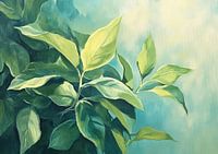Levendige Groene Plant - Dit planten schilderij toont een levendige verzameling van groene bladeren met delicate lichtdetails die een frisse, natuurlijke sfeer uitstralen.