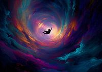 Koop dit abstracte kunstwerk Levendige Kosmische Vortex met Vallend Silhouet Kunst van BINEDITS als print op canvas, aluminium dibond, (ingelijste) fotoprint, behang en ArtFrame. Voor jou op maat geprint in Fine-Art kwaliteit.