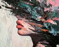 Details: abstract, portret, profil, lips, dynamic, kleurrijk, expressief, moderne kunst, canvas, textuur
