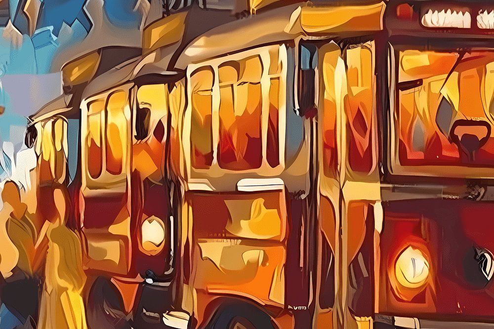 Dompel jezelf onder in de levendige sfeer van een bruisende stad bij nacht met dit impressionistische kunstwerk. Het stelt een gezellige avond voor, waar de warme gloed van straatlantaarns reflecteert op het glanzende oppervlak van een klassieke tram. Mensen flaneren over de straat, badend in een zee van kleuren die het nachtleven van de stad tot leven brengt. Dit kunstwerk is een ode aan de dynamische energie van de stad, vastgelegd in dikke, epressieve penseelstreken die zowel beweging als emotie oproepen. Perfect voor iedereen die verlangt naar de romantische en ongrijpbare allure van stedelijke avonturen.