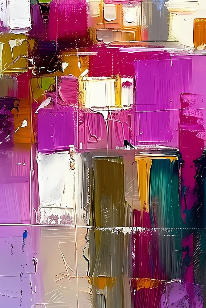 Dit fascinerende kunstwerk is een ware explosie van kleur, ideaal om een moderne twist te geven aan elk interieur. De dikke, expressieve verfstreken in levendige tinten van paars, roze, wit, en blauw brengen energie en dynamiek. Dit schilderij, perfect voor de woonkamer of het kantoor, nodigt uit om verder te kijken en te verdwalen in de abstracte vormen die steeds weer iets nieuws lijken te onthullen. Een prachtig stuk dat zowel gespreksstof biedt als een statement maakt in uw ruimte.