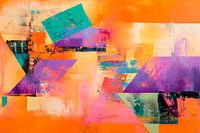Een vuurwerk van levendige oranje tinten, levendig turquoise en opwindend violet creëert een dynamische sfeer. De geometrische vormen, die met elkaar in verbinding lijken te staan, geven de ruimte energie en creativiteit. Dit kunstwerk is ideaal voor een moderne woonkamer of een inspirerend kantoor, waar het het perfecte accent vormt.