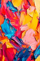 Een levendig samenspel van heldere kleuren, waarbij krachtig blauw en stralend rood harmonieus dansen met warm geel en zacht roze. Deze levendige kleurlagen creëren een dynamische sfeer die de creatieve flair van een kantoor of de gezelligheid van een woonkamer perfect onderstreept. Een echte blikvanger die inspireert en verrukt!