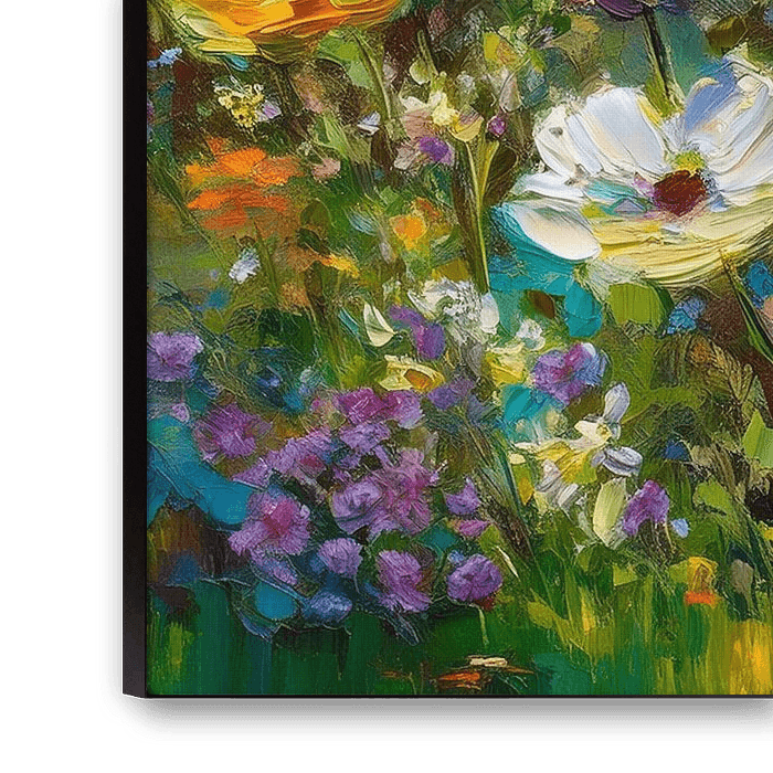 bloemen; mooie; tuin; kleurige; tuin; impressionisme; zomer; geschilderd; monet; geinspireerd; fris; bloeiende; oranje; blauw; groen; levendig