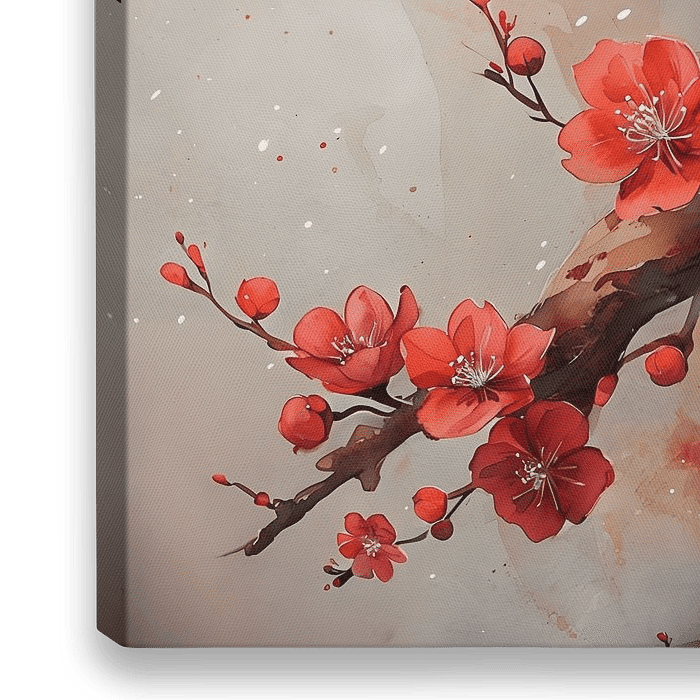 Levendige kersenbloesems tegen een zachte gestructureerde achtergrond