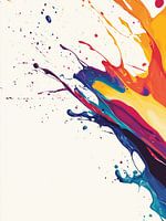 Dit werk combineert felle kleurstreken in blauw, roze en geel met levendige details op een witte achtergrond. De levendige kleuren lijken te dansen en creëren een speelse, energieke compositie. Het contrast tussen de felle kleuren en de neutrale achtergrond creëert een frisse en moderne esthetiek. Een ideaal stuk voor creatieve en levendige ruimtes.