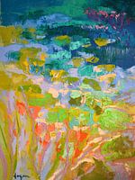Dorothy Fagans 'Landscapes of the Heart' barsten van pure emotionele intensiteit. Haar abstracte schilderijen zijn een visuele explosie waarin de natuur is teruggebracht tot de meest essentiële krachten - beweging, kleur en energie. Dikke lagen verf dansen over het doek in ongetemd fuchsia, elektrisch turquoise en gloeiend oranje, waarbij elke penseelstreek een directe emotionele lading met zich meedraagt.
