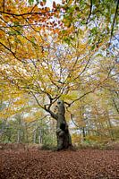 Oude holle beuk in volle glorie met prachtig herfstblad. Utrechtse Heuvelrug, Nederland.
