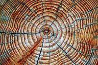 Tijdens mijn wandeling in het Duitse bos, zag ik deze doorgezaagde boomstam liggen. Wauw! dacht bij mezelf ''wat mooie jaarringen in het hout'' en al die kleuren. Dat moet een bijzondere boom geweest zijn. Natuur als kunstenaar, prachtig.
