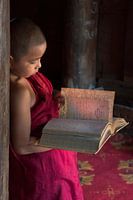 Koop de foto Lezen in een tempel in Pagan, Myanmar van Anges van der Logt als print op canvas, aluminium dibond, (ingelijste) fotoprint, behang en ArtFrame. Voor jou op maat geprint in Fine-Art kwaliteit.