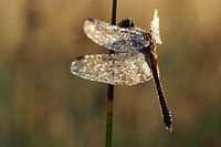 Deze foto is 's ochtends vroeg genomen op het Gastels Laag. Er zaten verschillende libellen die nog op moesten warmen door de zon. Op de vleugels zijn nog de dauwdruppels te zien.