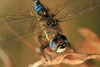 Dit is een macro-opname van een libel: de paardenbijter. Deze libel heeft zijn naam te danken aan het feit dat hij jaagt op insecten die door paarden worden aangetrokken. Het is een algemene soort in Nederland.