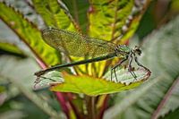 Libelle op een blad van de Reuzenbalsemien langs de rivier de Geul in Zuid-Limburg.