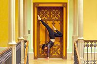 Een acrobatisch paar voor een gebouw
