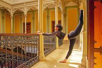 Een acrobaat in de gang van het Colomischlössle Museum in Freiburg